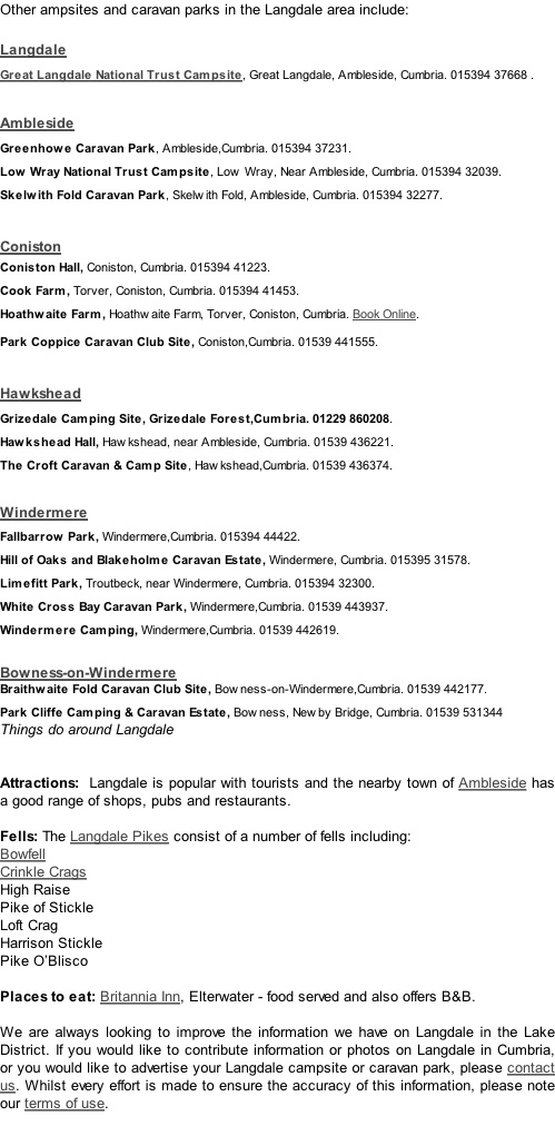 More info: Langdale Tourist Info